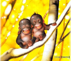 Ceritanya begini.. Monyet, apabila angin ribut atau taufan melanda, apa yang dio-wan (dia+haiwan, kalau dia+orang=diorang, he.he) buat? Dio-wan akan peluk pokok, dahan dan mana-mana yang boleh dijadikan tempat berpaut supaya tidak terjatuh atau diterbangkan angin ribut tersebut.